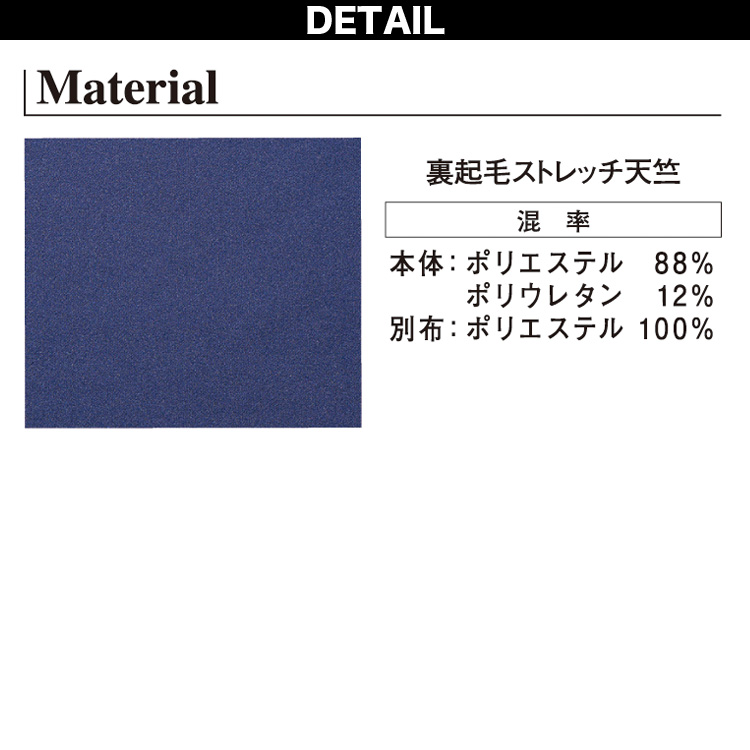 裏起毛素材。適度な保温性と快適な着心地を実現。