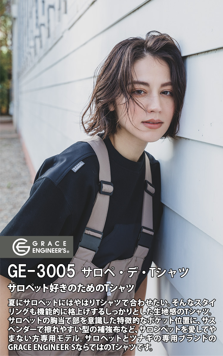 サロペットとツナギの専門ブランドのGRACE ENGINEER’SならではのTシャツです。