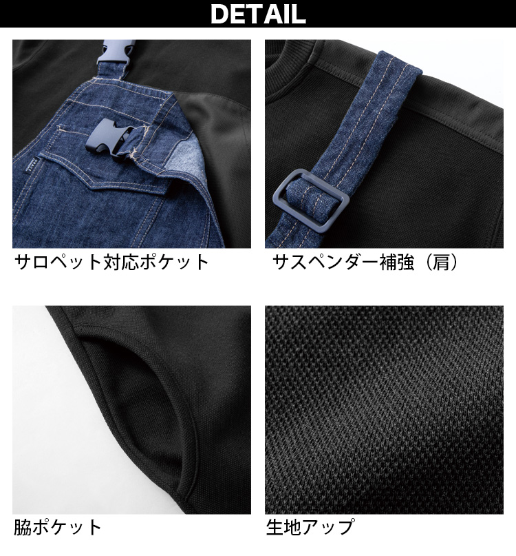 ■特徴 サスペンダーで擦れやすい肩部分補強布