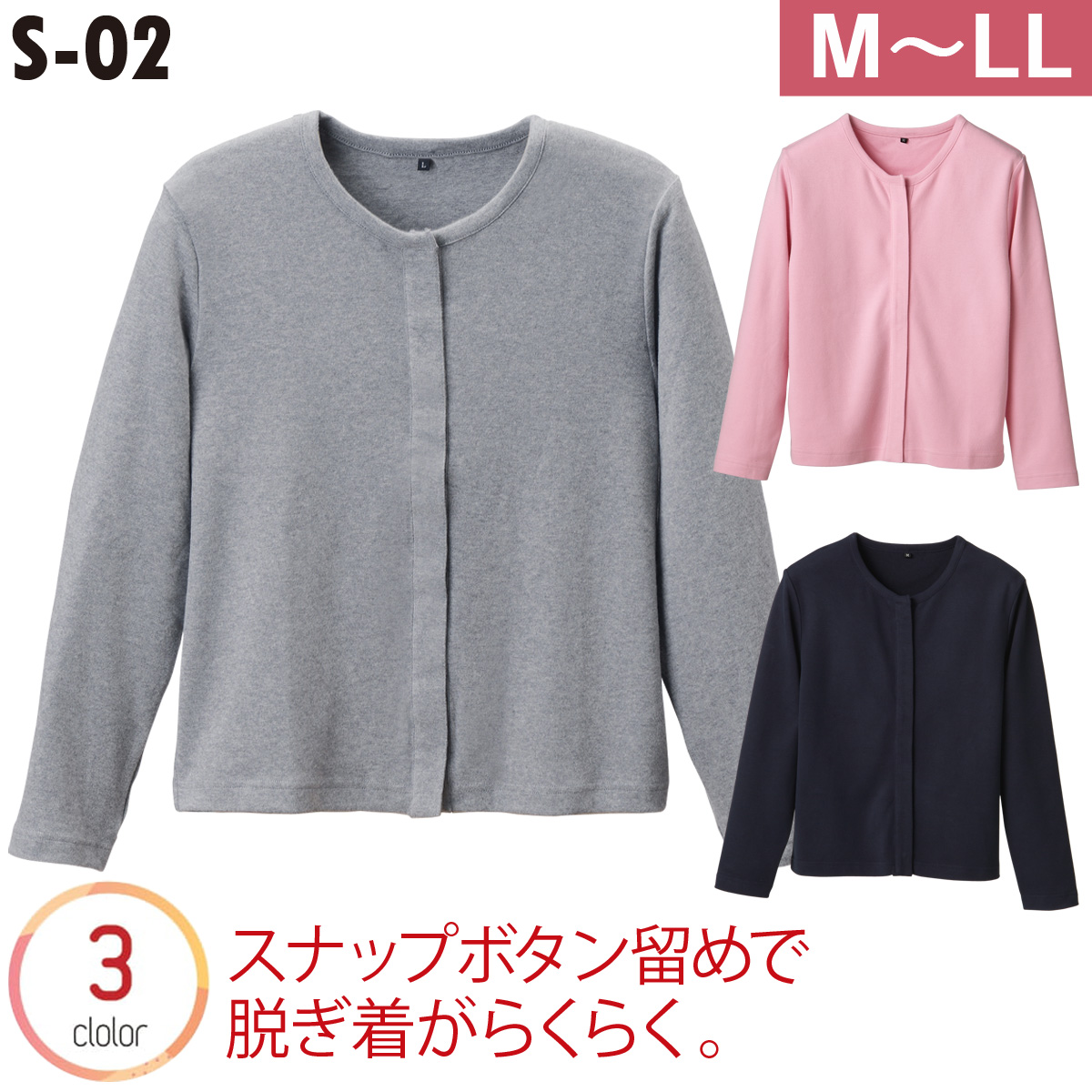 スナップボタンカーディガン S-02 日本製 ■品質:綿98%、ポリエステル2% スムース起毛■機能:家庭用洗濯(弱)可能