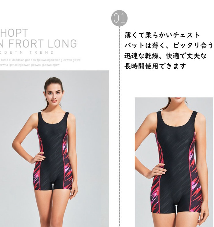 水着 競泳水着 フィットネス水着 ワンピース オールインワン レディース 体系カバー スリムデザイン フィットネス 水着 競泳用 練習用 大きいサイズ スイムウエア 胸パッド付きで安心