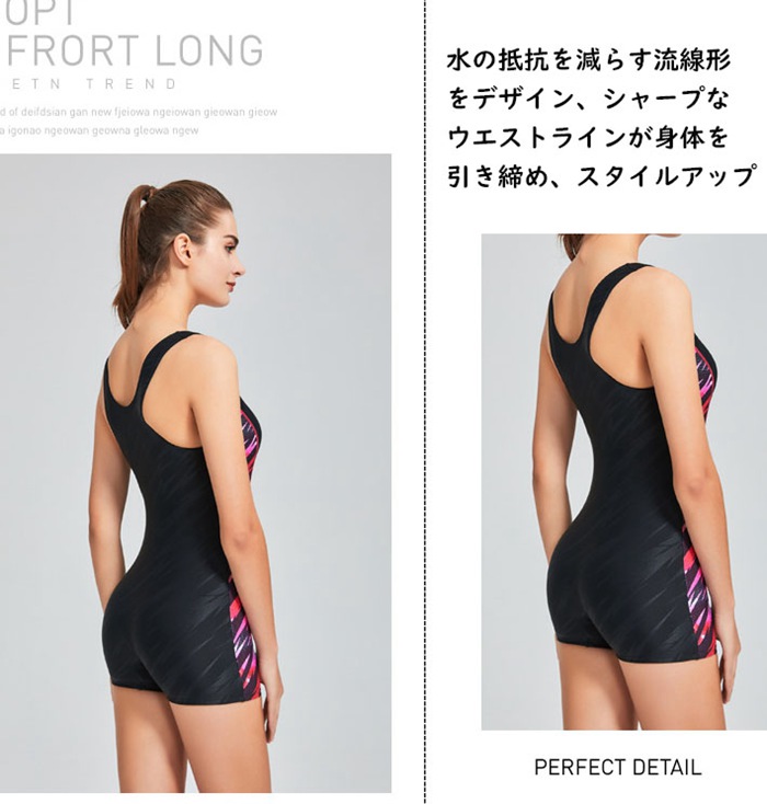 水着 競泳水着 フィットネス水着 ワンピース オールインワン レディース 体系カバー スリムデザイン フィットネス 水着