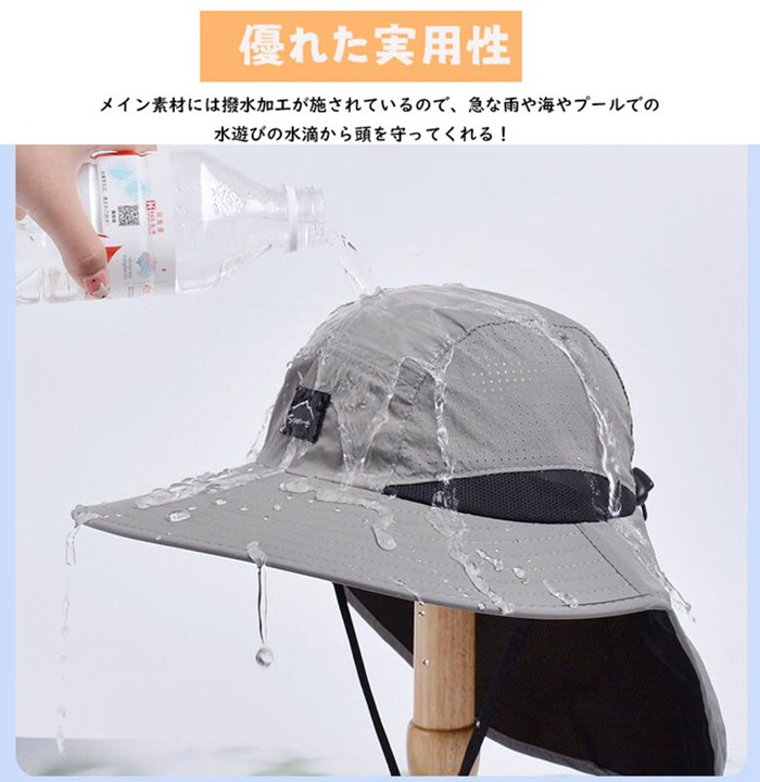 サーフハット 日よけ ガード 首までガード つば広帽子 メンズ サンシェードつき UVカット 防水帽子 日焼け防止 防風 通気性 自転車 あご紐付き 調整可能 シンプル キャンプ 釣り 農業 ギフト