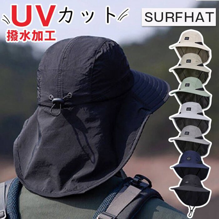 サーフハット 日よけ ガード 首までガード つば広帽子 メンズ サンシェードつき