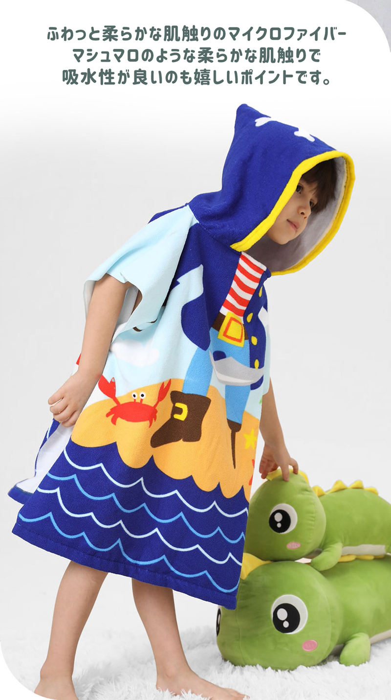 マントタオル バスタオル フード付き 着る毛布 子供服 キッズ 男の子 女の子 プールタオル 水着 プールグッズ 小学校 小学生 学校用 ポンチョタオル