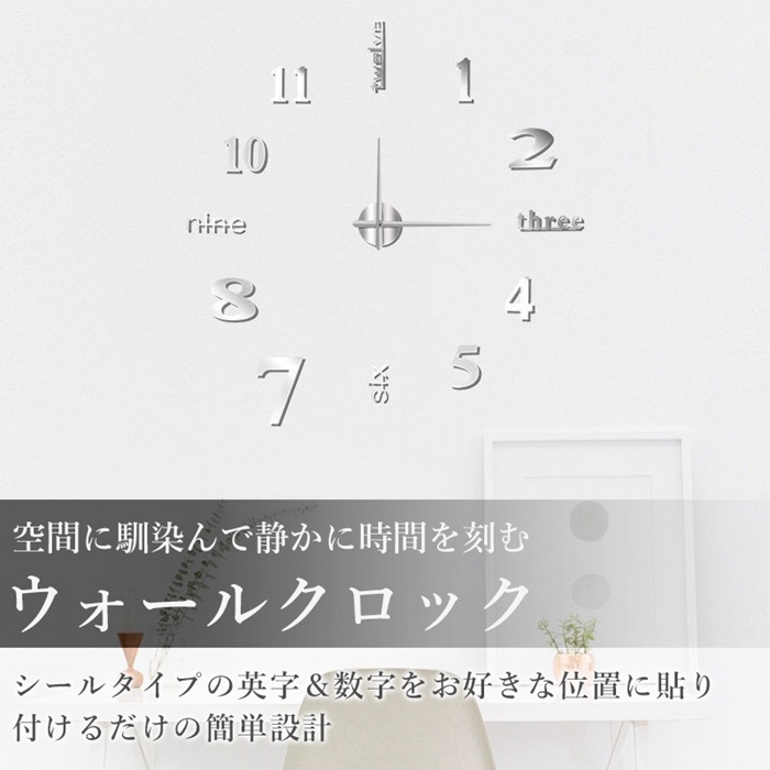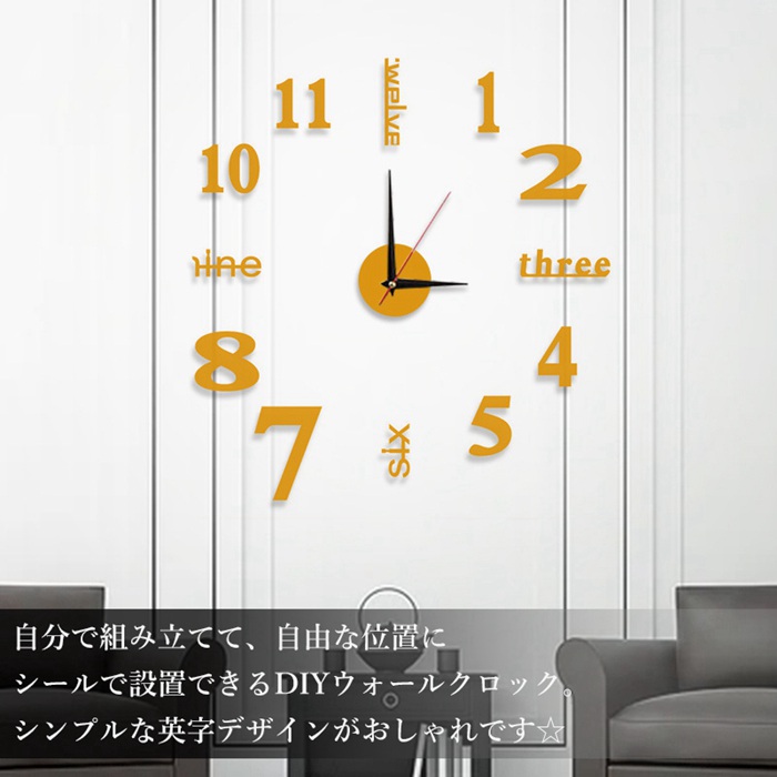 DIY ウォールクロック 壁時計 ウォールアート 子供部屋 文字 ステッカー ブラック モダン クロック 壁に貼れる 時計