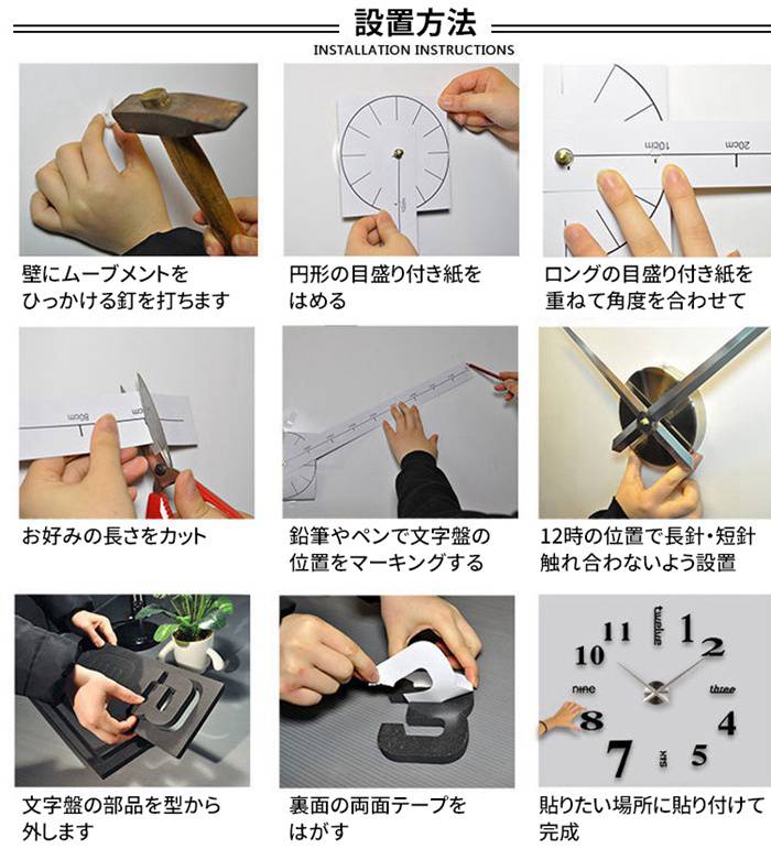 DIY気分で楽しく飾れるのでお子様と一緒に飾ってみても素敵です。ウォールクロックが自由にレイアウトできるから、取り付けたい壁にお好みのカタチで掛けることが可能です。