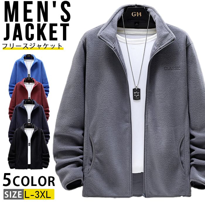 フリースジャケット メンズ 無地 フリース 防寒 ジャケット ブルゾン 暖かい 防風 大きいサイズ ジップアップ スタンドネック 秋 冬 登山 ゴルフ 釣り キャンプ あったか