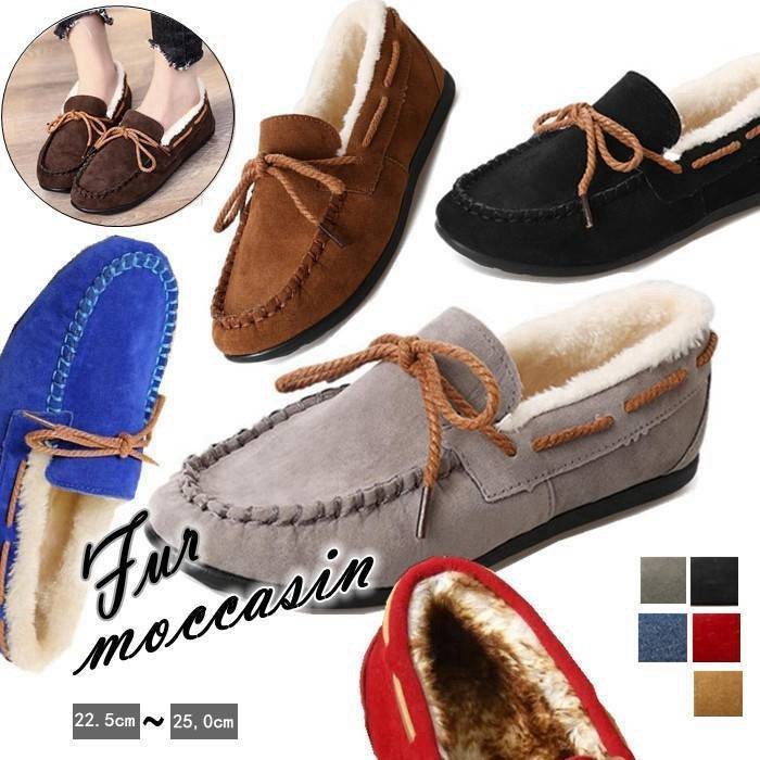 モカシン レディース 靴 ムートンブーツ パンプス スリッポン スエード フラットシューズ ぺたんこ靴 ボア 防寒 モカシンシューズ