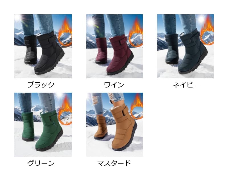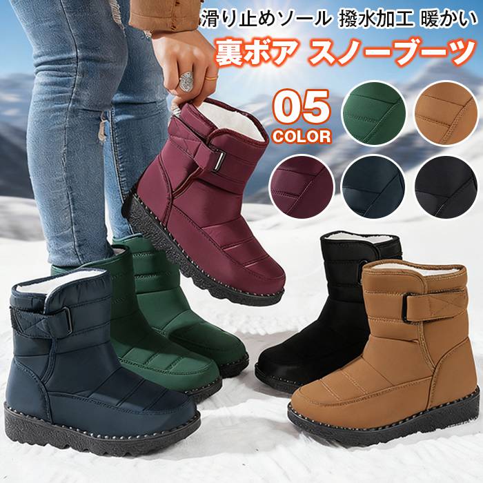 裏ボア スノーブーツ レディース 裏起毛 ミドルブーツ ムートンブーツ 滑り止めソール 撥水加工 暖かい 防寒 靴 冬用シュ
