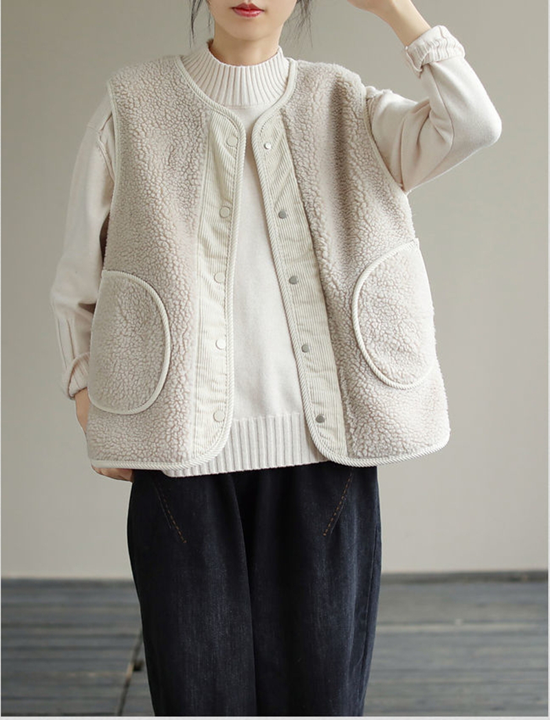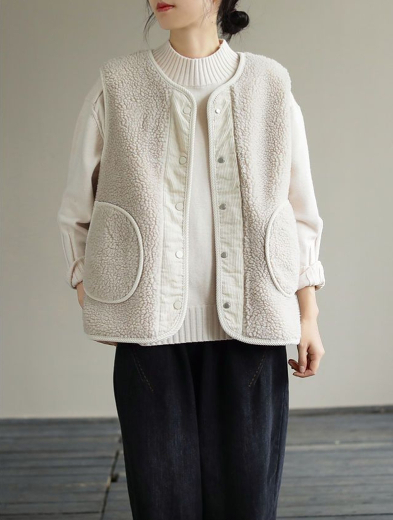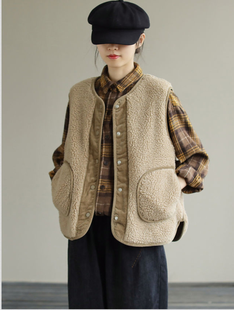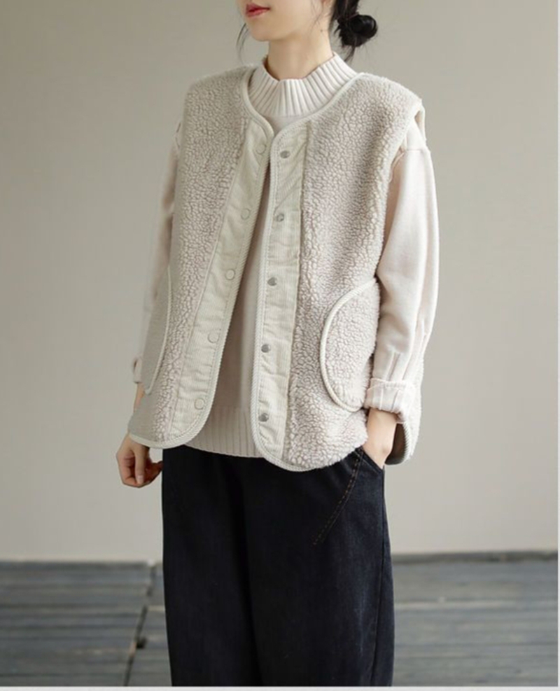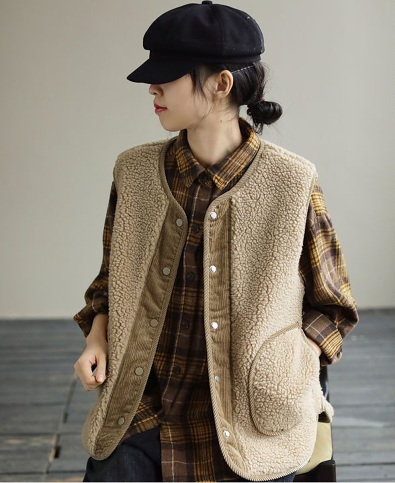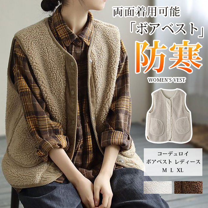 ベスト レディース ボアベスト 前開き コーデュロイ リバーシブル アウター 厚手 両面着用可能 無地 ジレ トップス ノースリーブ ボタン 秋 冬