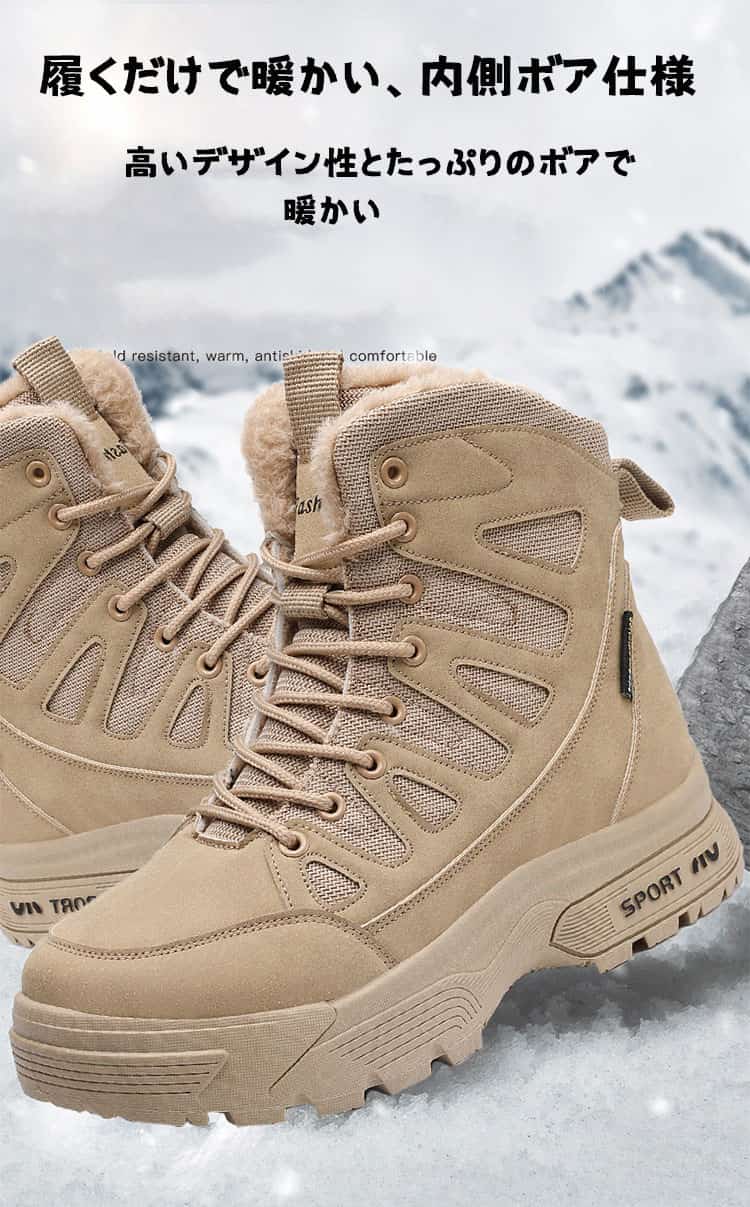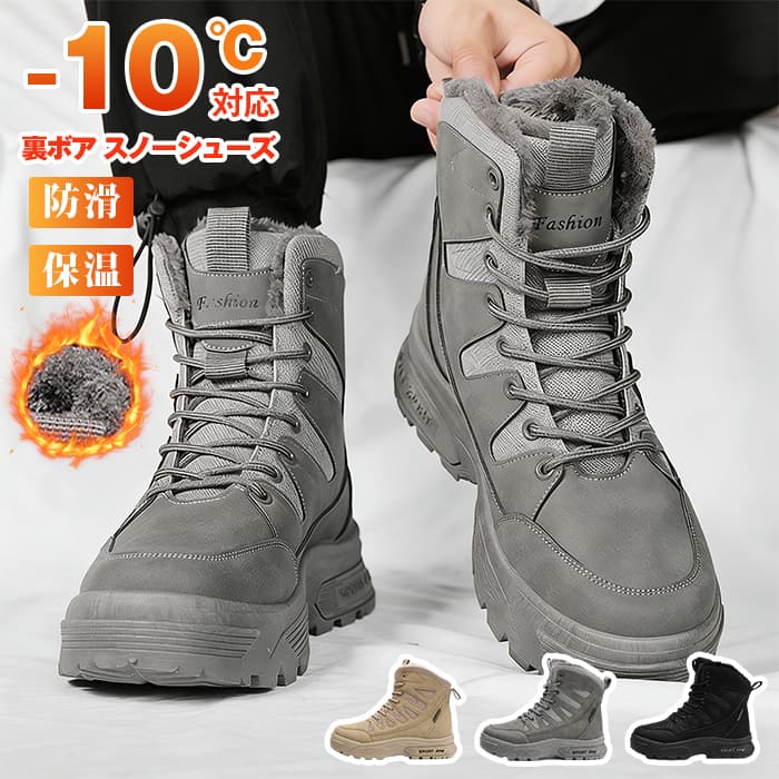 スノーシューズ メンズ スノーブーツ -10℃対応 雪靴 防寒 ブーツ 裏ボア ワークブーツ ムートンブーツ 作業着 ブーツ バイ
