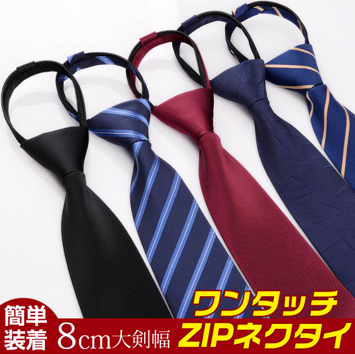 ワンタッチ ZIPネクタイ ネクタイ メンズ ビジネス ファスナー体 大剣先8cm 新生活 フォーマル 紳士 男性 就活 洗える 父の日