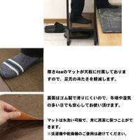 厚さ4mmのマットが天板に付属しておりますので、足元の冷たさを軽減します。 裏面はゴム製で滑りにくいので、冬場や湿気の多い日でも安心してお使い頂けます。