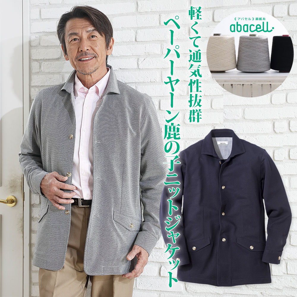 鹿の子ニットジャケット ペーパーヤーン メンズ シニア プレゼント 50代 60代 70代 80代 誕生日 ギフト ラッピング無料
