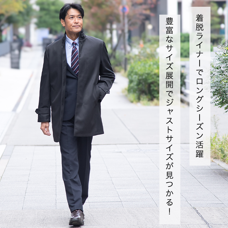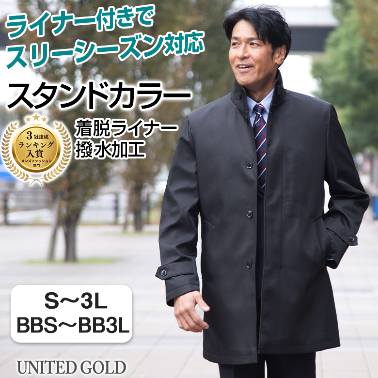 メンズ スタンドカラーコート 撥水加工 ライナー着脱 スリーシーズン対応 軽くて暖かい ビジネス 通勤 紳士 大きいサイズ