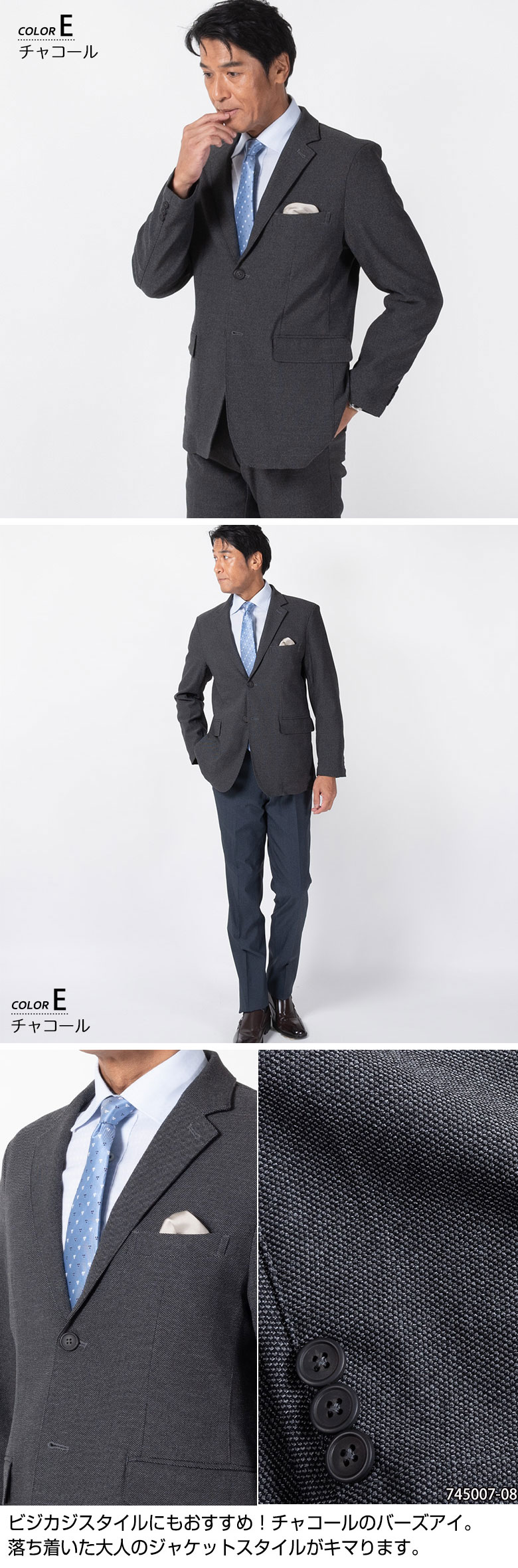 【キーワード】 シングル2つボタン 軽量 軽い 秋冬 春 ストレッチ 伸びる 伸縮 紳士服 ブレザー 上着 テーラード アンコンジャケット ノーパット メンズ ビジカジ ジャケパン ジャケット 旅行 ゴルフ チャコール グレー ネイビー 紺 セットアップ 上下セット ピンヘッド バーズアイ ビジネススーツ メンズスーツ スリムフィット 通勤 仕事着 オフィス 抗シワ 出張向け シンプルデザイン