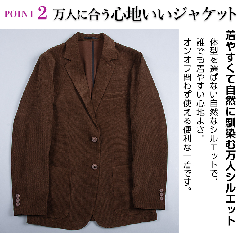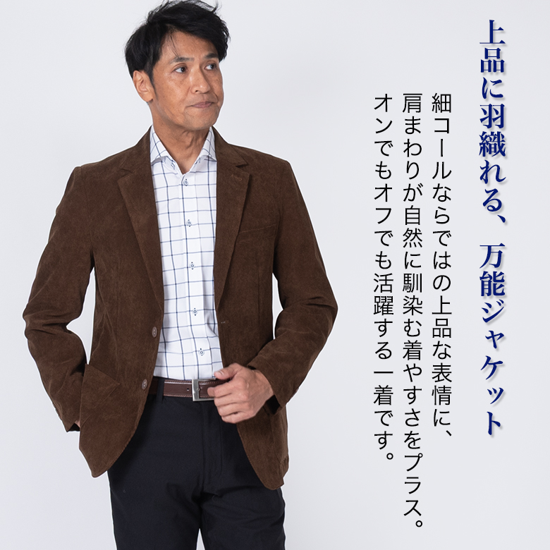 メンズ ジャケット コーデュロイ 細コール 秋冬春 ストレッチ すっきり着られる 肩パッドなし オンオフ対応