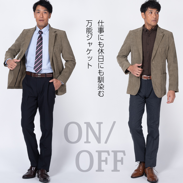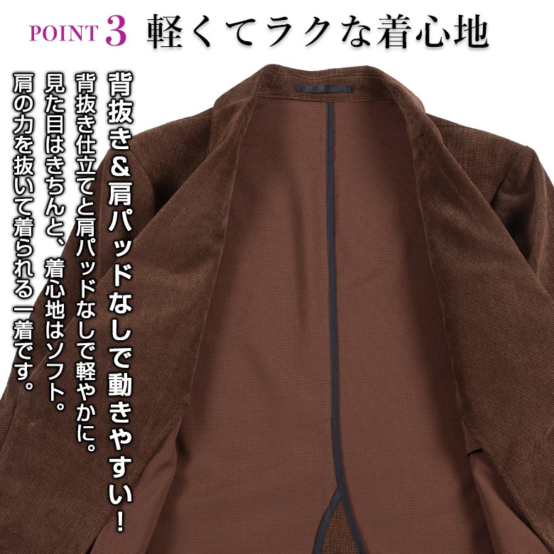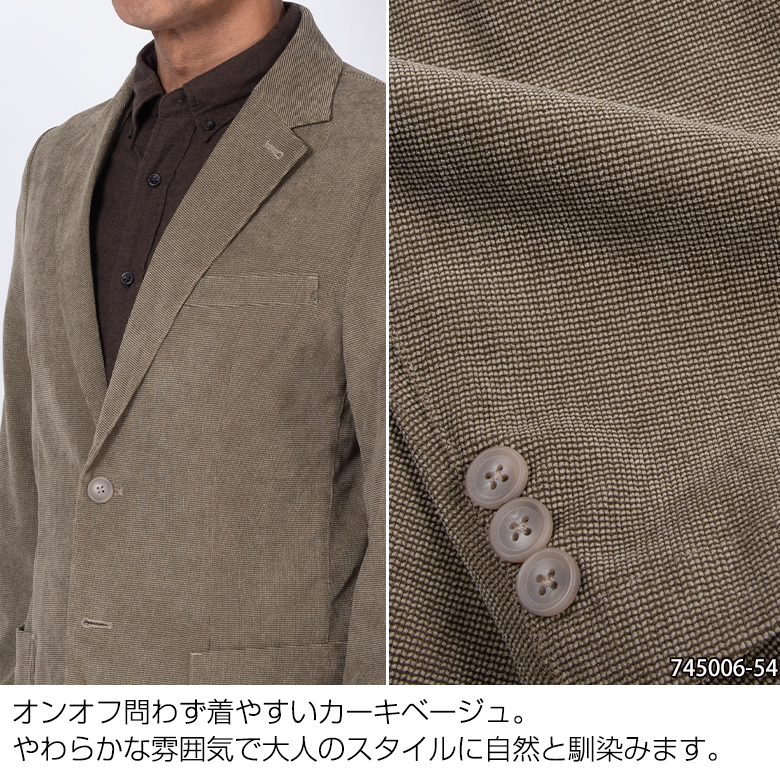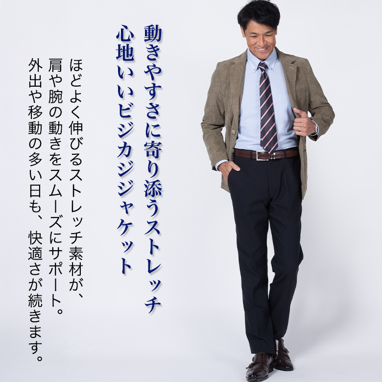 【キーワード】 ジャケット シングル2つボタン 秋冬 春 スリーシーズン コーデュロイ コーデロイ コール天 紳士服 ビジネス オフスタイル ブレザー 上着 肩パットなし アンコンジャケット 軽量 テーラードジャケット メンズ ストレッチ 伸びる 伸縮素材 WARM BIZ 通勤 オフィス ビジカジ ジャケパン 旅行 ゴルフ ブラウン 茶色 カーキ カーキベージュ ベージュ ビジカジ オフスタイル