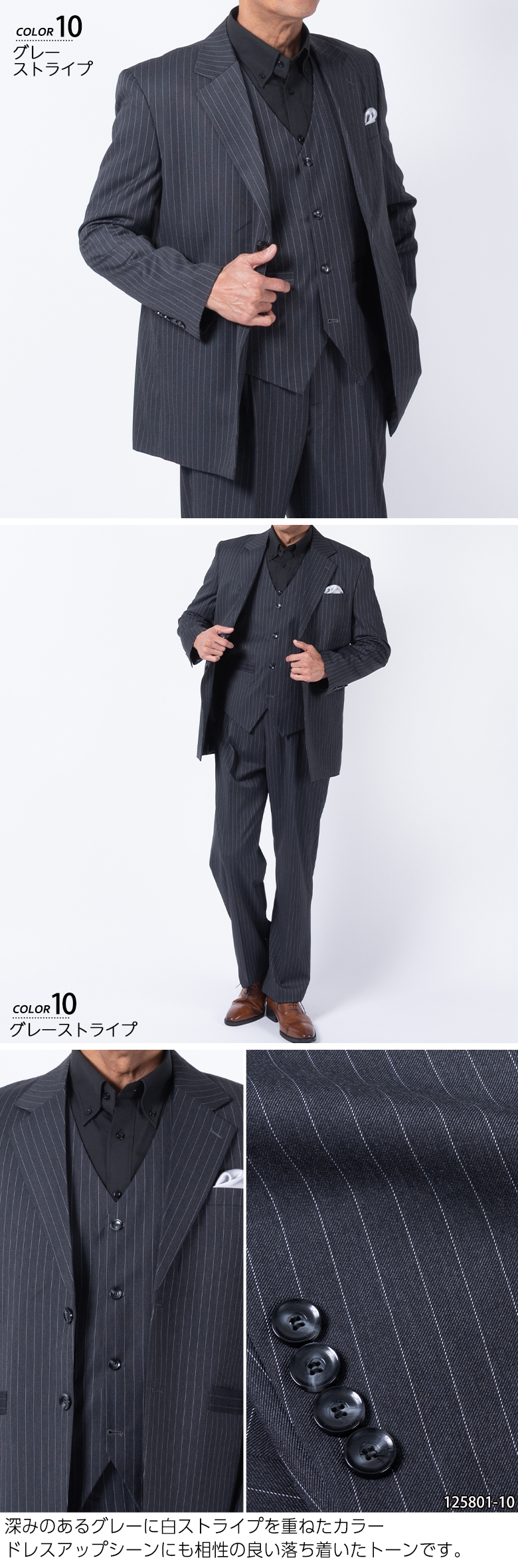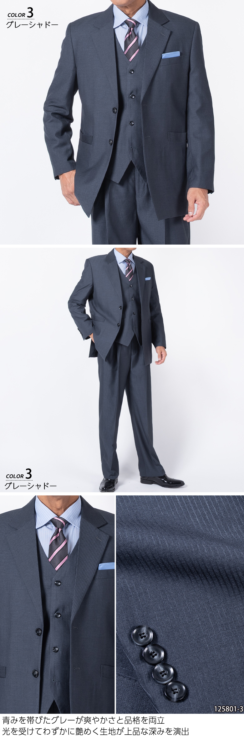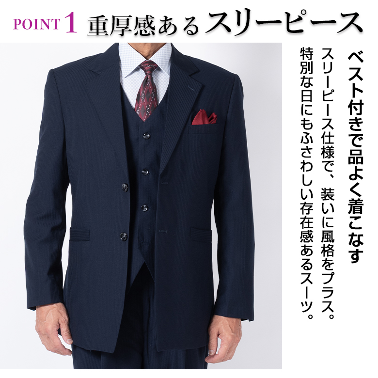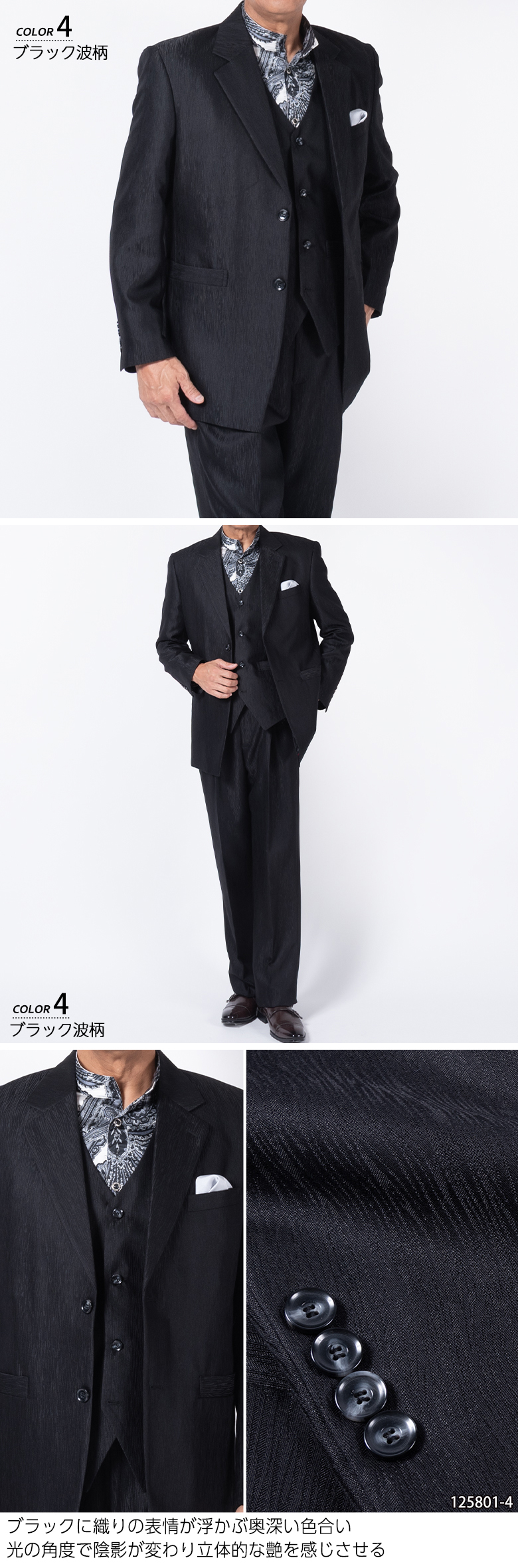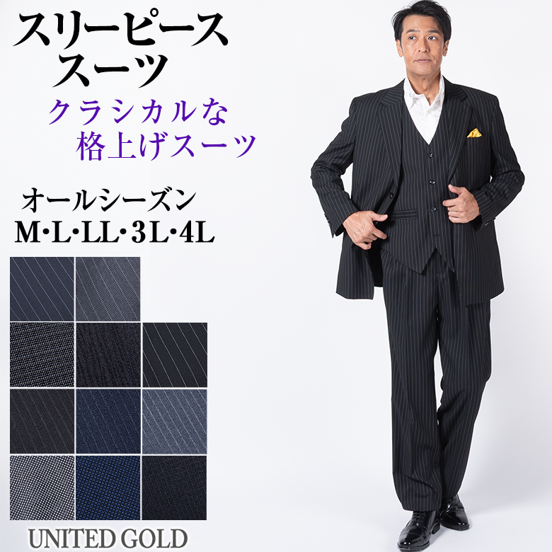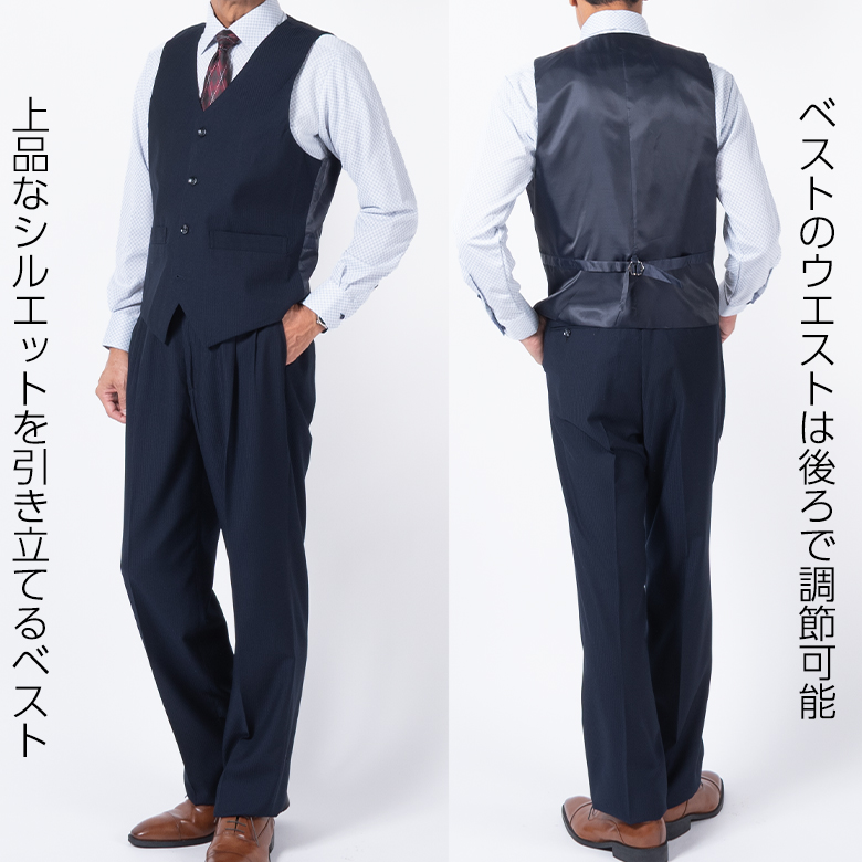 スーツ メンズ スリーピース ベスト付き オールシーズン対応 フォーマルスーツ 結婚式 披露宴 パーティ ツータック ゆったり 大きいサイズ