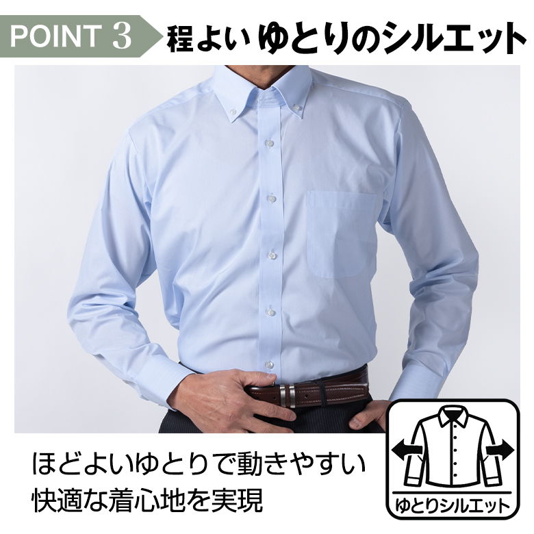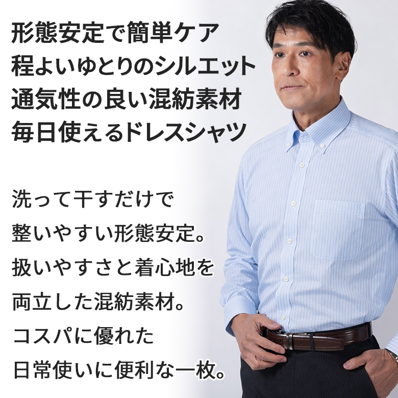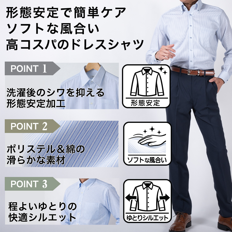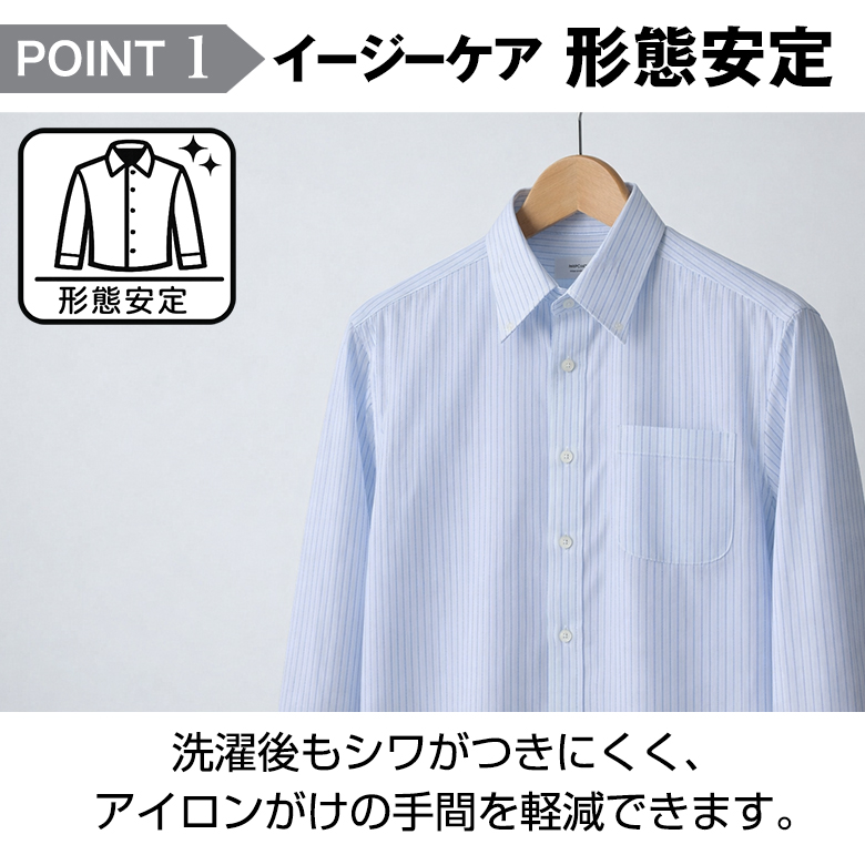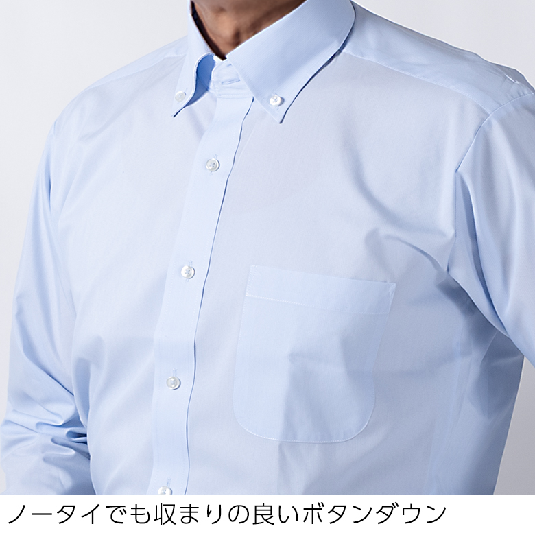 ワイシャツ 長袖 メンズ ノーアイロン 形態安定 Yシャツ ボタンダウン セミワイド ビジネス