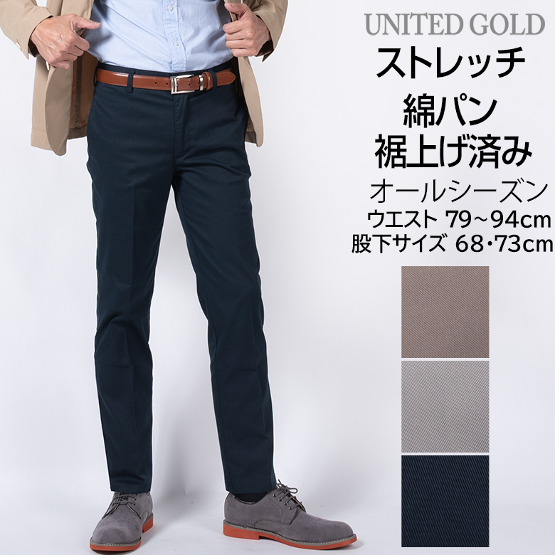 メンズ チノパン 裾上げ済み ストレッチ 洗える ノータックパンツ オールシーズン対応 股下68cm 73cm ベーシック カジュアル