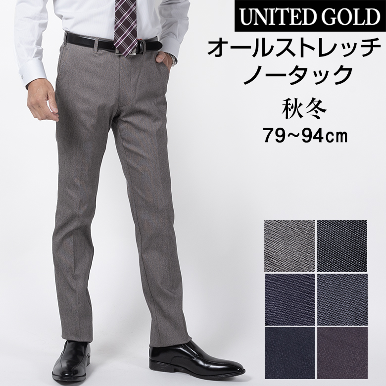 スラックス メンズ ノータック ストレッチ ウエストストレッチ 洗える カジュアルパンツ 秋冬