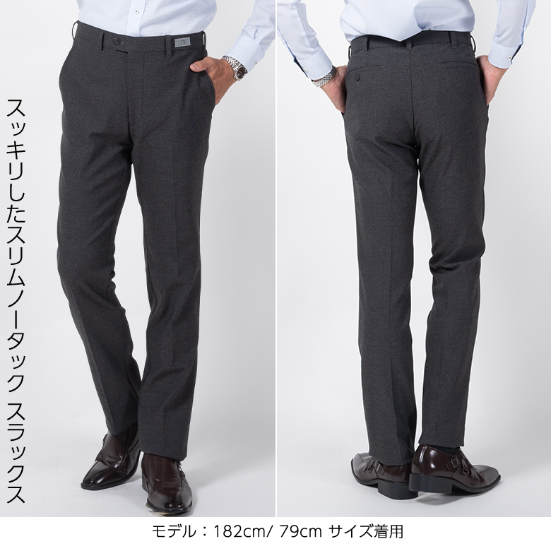 【キーワード】 メンズ スラックス ビジネス 軽量 秋冬 春 ストレッチ ウエストストレッチ ウエスト伸縮 パンツ 美脚パンツ ノータック スリム スッキリ グレー ネイビー 紺 ストレッチ