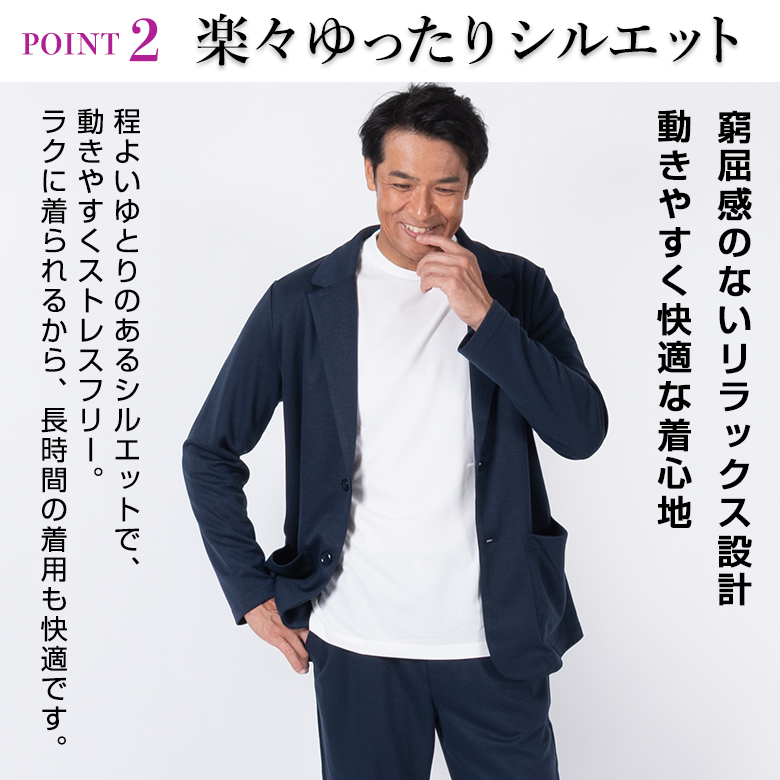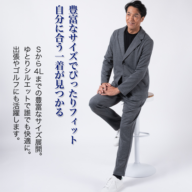 【キーワード】 メンズ カジュアルスーツ セットアップスーツ ゆったり ゆとり 快適 サイズ展開 大きなサイズ 小さいサイズ スウェット生地 ジャージ素材 ポンチ ポンチ素材 テレワーク リラックススーツ 在宅ワーク 在宅勤務 出張 旅行 カジュアル ビジネス ビジカジ ゴルフ 休日 ウォッシャブル 洗える 洗濯可 ストレッチ 伸縮素材 スウェット素材 シングル2ボタン 黒 ブラック 濃紺 ネイビー グレー ダークグレー ブラウン 春夏 秋 大きいサイズ