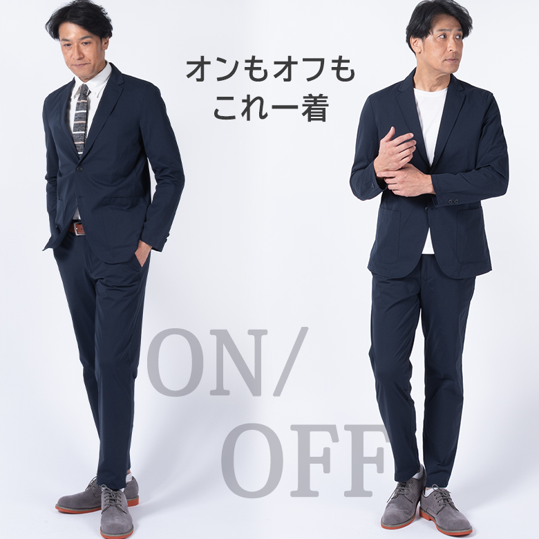 セットアップ メンズ スーツ 洗える 軽量 2WAYストレッチ テーパード オールシーズン ビジカジ