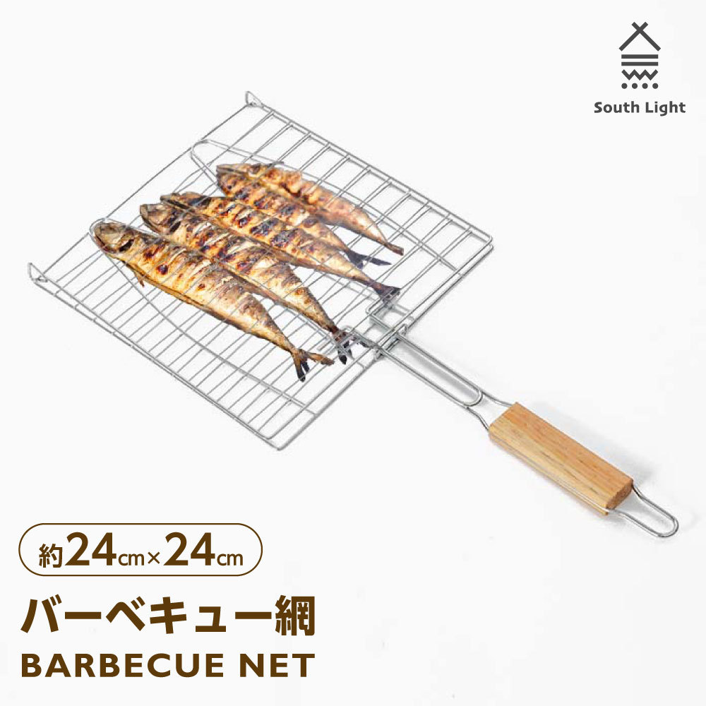 South Light バーベキュー網 BBQ 直火専用 約24cm×24cm 持ち運び楽 料理 ソロキャンプ シーフード はさみ焼き 両面 魚焼き アウトドア sl-grid23