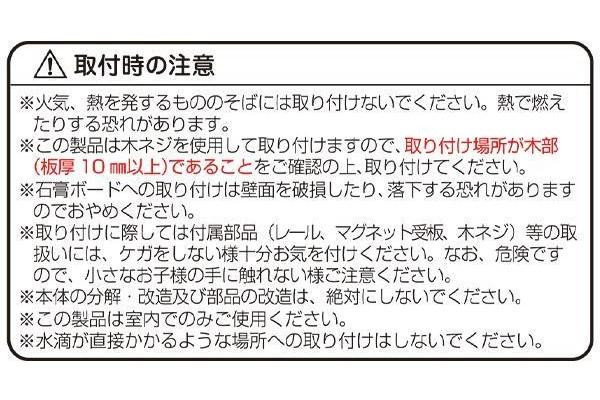 付属品レール×1本、木ネジ×10本、マグネット受け板×2枚