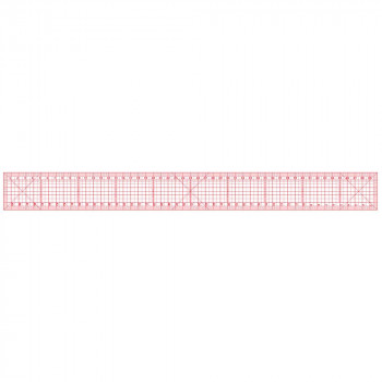 つや消しクリア(マット調)のコーティングなので、黒布にも見やすくなっています。片側は縦目盛りになっているので、縦方向の作業に便利です。7mm・12mmの縫い代ラインと、定規の中央と両端にバイヤスが入っています。