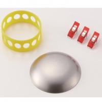 布製品への刺しゅうのアレンジや、アップリケや裾のまつり縫いなど、かがる作業がラクにできる道具です。ドームの形をした金属製の道具と布をとめるための専用ゴム、仮止めクリップがセットになっています。ドームに針をあて、布をすくうことで、ステッチが楽にできます。刺しゅう枠だと張りにくい、洋服の襟・ポケット・腕部分、ズボン、ハンカチの端、ポーチなどに。アップリケ、洋服の裾のまつり縫いなどのかがる作業に。