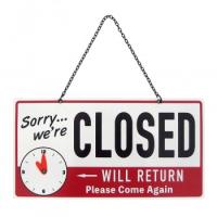 営業再開時間を知らせる時計針が付いたOPEN/CLOSEサイン。心配せずに休憩がとれちゃいます。