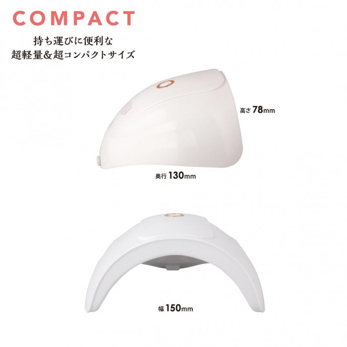 | 卵2個分、105gという超軽量ライトです。UV&LED、2種類のジェルに対応。スタートボタンをワンプッシュで60秒点灯し、もう一度押すと消灯します。長押しで120秒照射にも対応します。 ※本製品にはUSB電源アダプター(別売り)が必要です。5V/2.0A以上のUSB電源をお使いください。 ※パソコンのUSBや5W(5V/1A)程度のUSB充電器など、低出力のUSBでは十分な硬化ができない場合がございます。 |