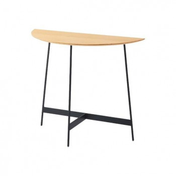 シンプルかつスタイリッシュなデザインのコンソール 「美しい木目×アイアンレッグ」異素材の組み合わせが上品な印象を与えるコンソール。美しいシンメトリーのフォルムで、天板が半円なので様々な場面で活躍します。シンプルながらお部屋にアクセントを加え、空間をグレードアップしてくれます。