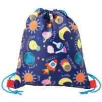 ワクワクが詰まったサイエンス柄のナップザックです。イラストと英単語が書いてあるので、英語の勉強にも。