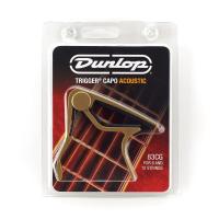 ワンタッチ装着のDunlopアコースティックギター用カポタスト。ゴールド