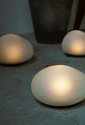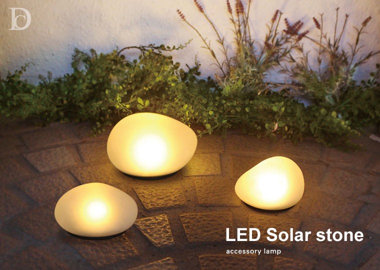 | 一般的なソーラーライトは、器具上部の目立つところに機械的なソーラーパネルがついていますが、ディクラッセのLEDソーラーストーンはガラス内部に組み込まれているためすっきりとしたデザインになっています。ぽってりとしたガラスの表面には、滑らかな質感のフロスト加工を施しており、暗くなると神秘的で優しい明かりをともします。厚みのあるガラス素材は重量感があり、風の強い時でも飛ばされにくく安心です。 | ||||||||||||||||||||||
