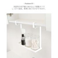 | 洗面所の吊戸棚に挟み込んで調整ネジでしっかり固定。簡単に取り付けができます。 | |||||||||||||