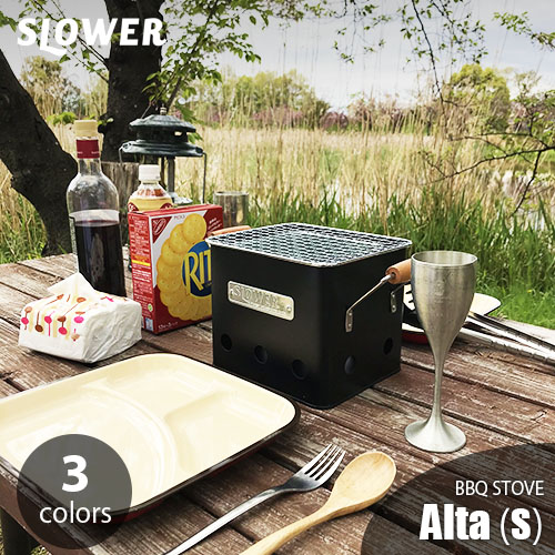| BBQ STOVE Alta (S) バーベキューストーブ アルタ Sサイズ 1人〜少人数向けのおしゃれでコンパクトなBBQコンロ 庭先でのちょっとしたバーベキューやキャンプなどでも小規模でバーベキューをしたい時、少人数やソロキャンプ等、コンパクトでちょっとしたバーベキューなどに最適なサイズ感のバーベキューコンロ。SLOWERらしいカラーリングと武骨ながら洗練されたデザインは従来のバーベキューコンロのイメージとは大きく異なり、人目を惹くこと間違いなし。もちろんコンロとしての性能もしっかり考慮。燃焼効率を高める吸気口の配置や内部ユニットの構造、持ち運び時のハンドルやお手入れのしやすさなど、総じてこの内容にもかかわらず、お求めやすい価格に抑えられているのが驚き。 | |||||||
