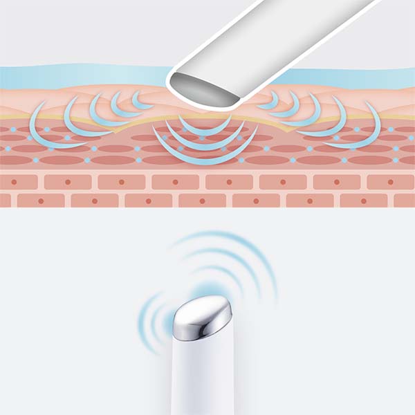 | Function 01 浸透 1分間に約13,000回の音波振動でキメ細かいケアが可能。美容成分の浸透を高めて、肌をしっとり保湿。ヘリを含めたシルバーのヘッド部分全体が音波によって振動し肌を心地良く刺激&ケア。 | |||||||||||||||||