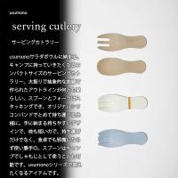 | usumono serving cutlery サービングカトラリー シリーズで揃えたくなる大振り曲線が愛らしいコンパクトサイズのサービングカトラリー usumonoサラダボウルに納まる、キャンプに持っていきたくなるコンパクトサイズのサービングカトラリー。大振りで抽象的な曲線で作られたアウトラインが何とも愛らしい。スプーンとフォークはスタッキングでき、オリジナルシリコンバンドでとめて持ち運べる仕様に。手に納まる持ちやすいデザインで、枝も短いので、持ち運びだけでなく、食卓でも邪魔にならず使い勝手◎。スプーンはキャンプでしゃもじとして使うことも可能です。usumonoシリーズで揃えたくなるアイテムです。 | |||||||||||||