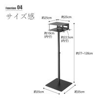 HEIGHT AJUSTABLE PROJECTOR STAND 高さ伸縮プロジェクタースタンド スッキリとスタイリッシュにホームシアター環境を整えることができるプロジェクタースタンド インテリアに馴染むデザインでリビングやベッドルームでのホームシアターにオススメ!プロジェクターとリモコン類を同時に収納できる、収納付き天板のプロジェクタースタンド。プロジェクターは天板上にも置けます。収納付きの天板でリモコン類も一緒に収納可能。上にパソコン機器を置いても操作可能。ケーブルは天板背面から出せるよう穴が開いており、また支柱にも内部を通せるようになっており見た目もスッキリさせることが可能です。ポータブルスピーカーを吊り下げたり、余ったケーブルの収納にも便利なフック付き。高さ約77〜120cmの間で、無段階で調節が可能です。 | |||||||||||||||||