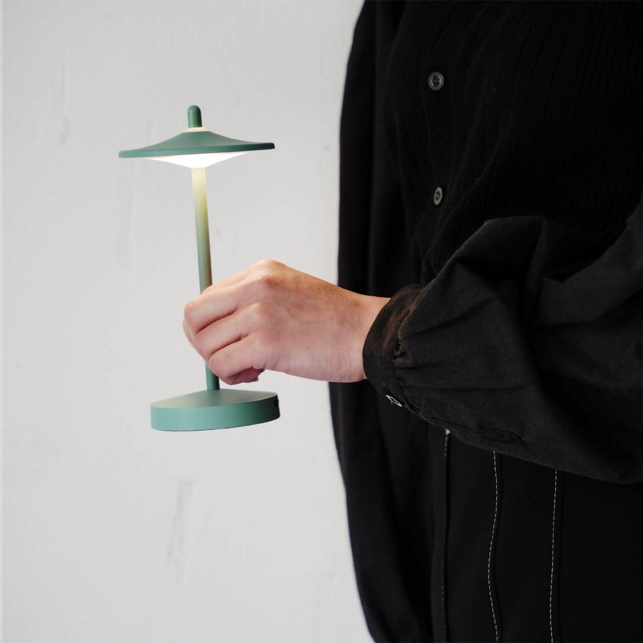 | Table lamp Pala portable lamp パーラ ポータブルランプ(LED内蔵) 傘をイメージしたコンパクトで持ち運びやすいポータブルランプ どこでも灯る、小さな傘のやさしい光。傘をイメージした、コンパクトで持ち運びやすいポータブルランプです。カラフルな4色展開で、こだわりのカラーが暮らしを彩ります。上部のでっぱりに触れるだけで簡単にON/OFF、長押しでお好みの明るさに調整可能。USB Type-C充電対応で、ナイトランプとしても、ちょっとした灯りとしても活躍します。手のひらサイズのやさしい光が、あなたのそばにいつでも寄り添います。 | ||||||||||||||||||