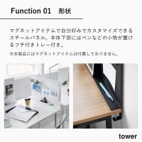 | デスク横トレー付きスチールパネル Desk-Side Steel Panel With Tray マグネットアイテムでカスタマイズできるスチールパネル マグネットアイテムで自分好みでカスタマイズできるスチールパネル。本体下部にはペンなどの小物が置けるフチ付きトレー付き。調節ネジで天板をはさみ込むだけで簡単に設置でき、しっかりと固定。デスク横に取り付けるとパーテーションとしてもお使いいただけます。 | |||||||||||||||||||||