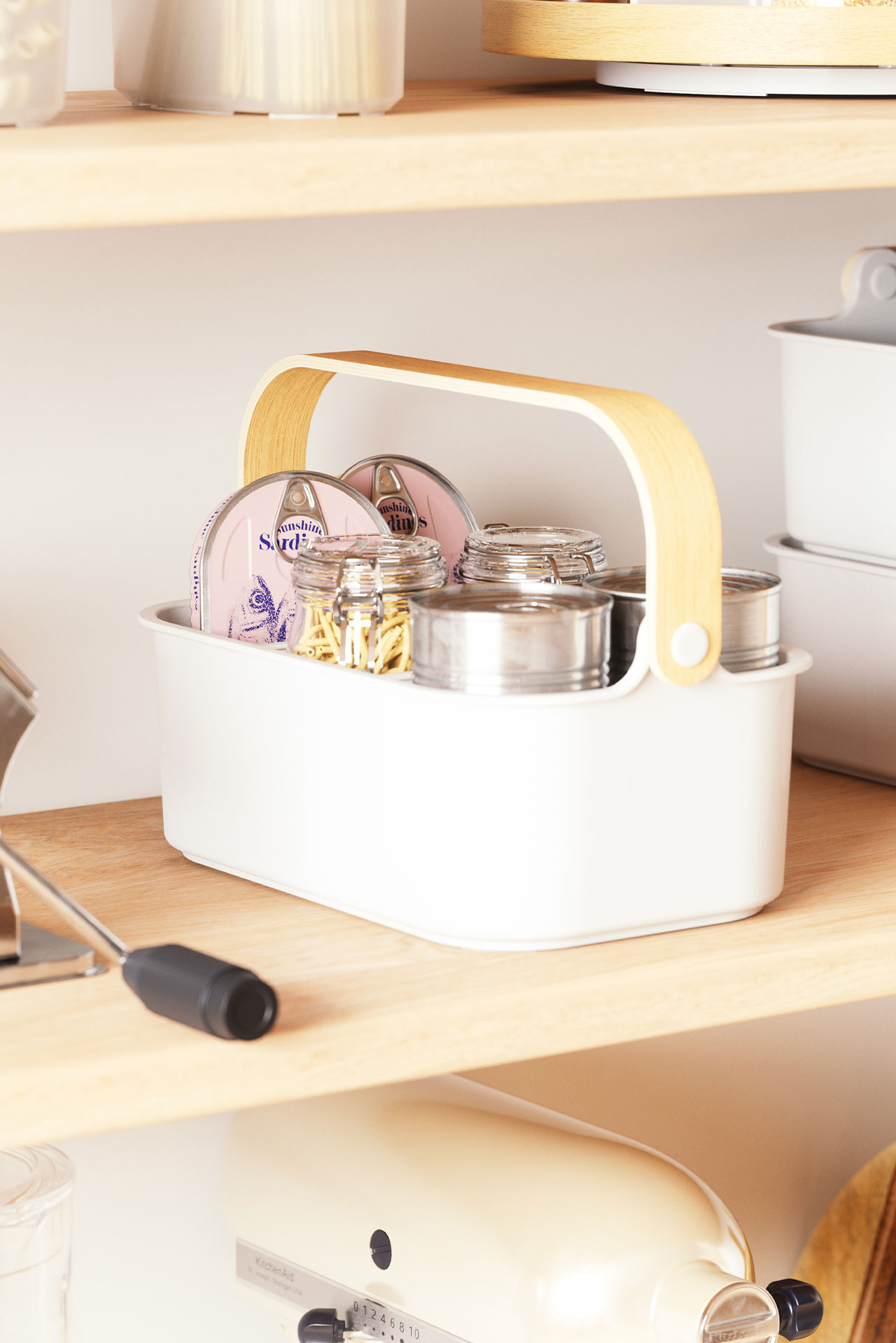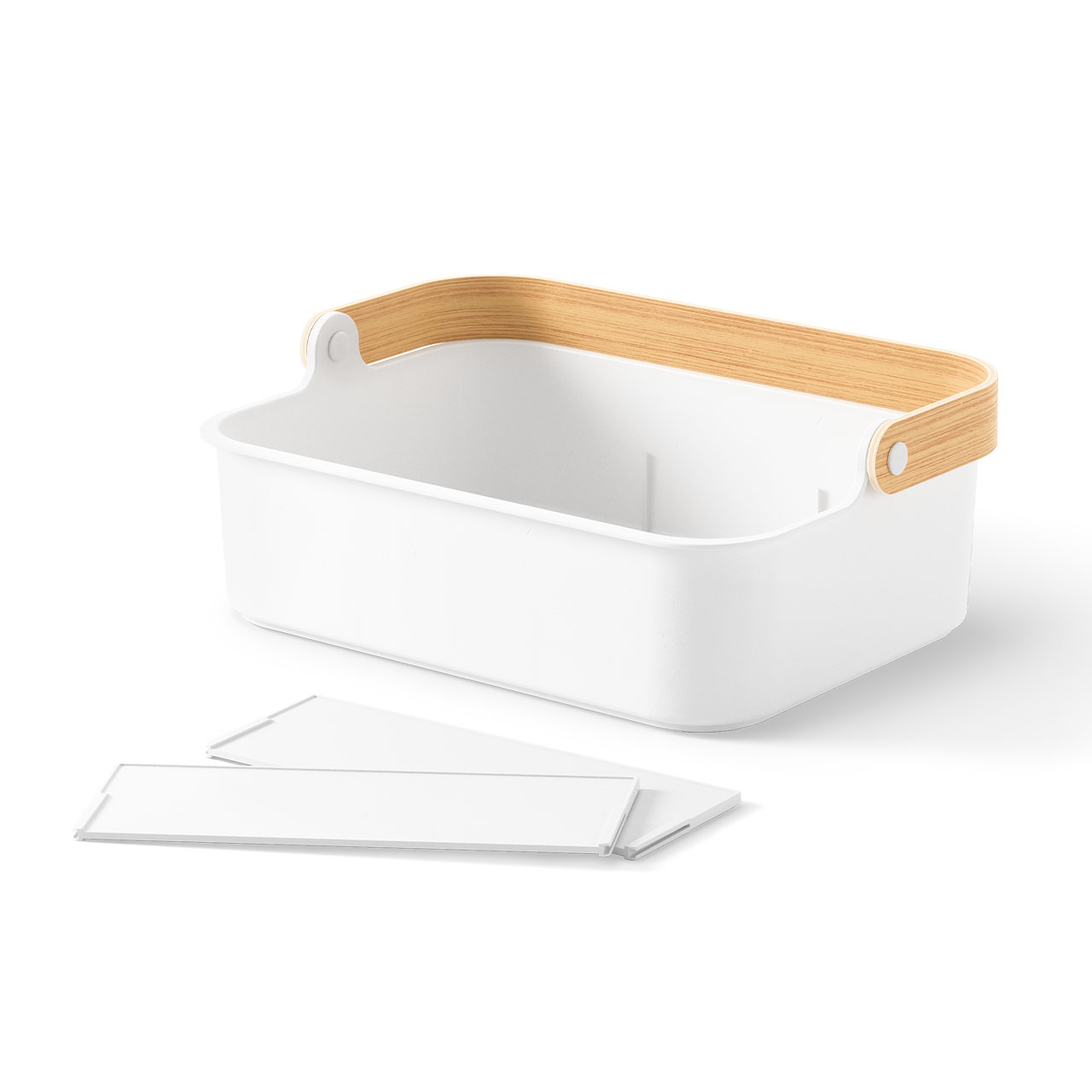 | ベルウッド スタッカブルビン 28×17cm BELLWOOD BIN 多用途なハンドル付き収納ボックス 便利な仕切りとハンドル付きの収納ボックス。調味料、バスアイテム、コスメ、文房具など細々したものの収納にぴったりサイズ。リサイクルプラスチックと再生可能な木材で作られています。 | |||||||