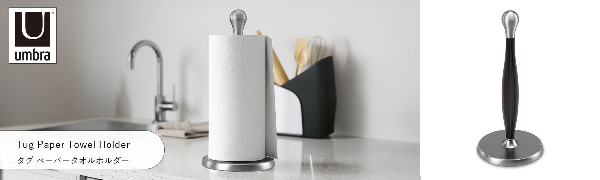 | タグ ペーパータオルホルダー Tug Paper Towel Holder 毎日のキッチンに、さりげない“デザインの楽しさ”を 滑らかでエレガントなラインとキッチンを引き立てるモダンなデザインの、スタンドアップペーパータオルホルダー。ベースには適度な重さがあり、転倒を防止し、ペーパータオルを引き出す際も安定しています。デザインだけでなく、日常使いの快適さにもこだわりました。 | |||||||||||||