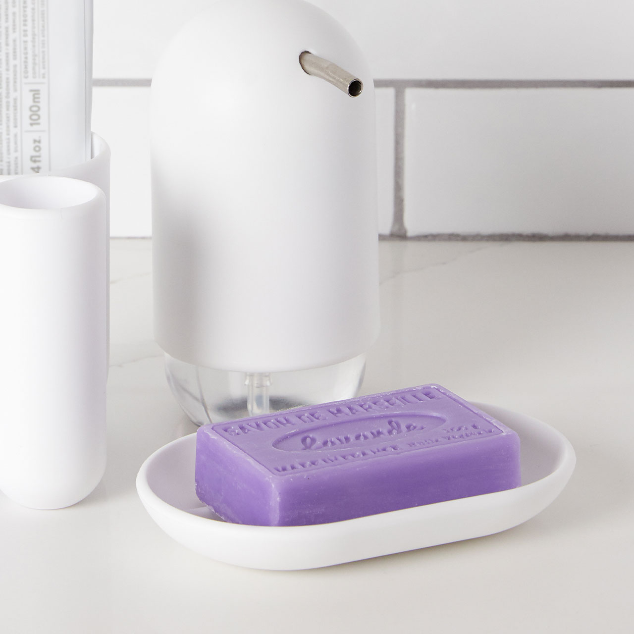 | タッチ ソープディッシュ Touch Soap Dish モダンなデザインのソープディッシュ 丸みを帯びたエッジと美しく湾曲した形状がモダンで洗練されたデザイン。ディッシュの内側に5本の隆起した線がソープを持ち上げ、乾いた状態に保つことができます。耐久性に優れた素材で、マットな質感は高級感を演出します。 | |||||||||